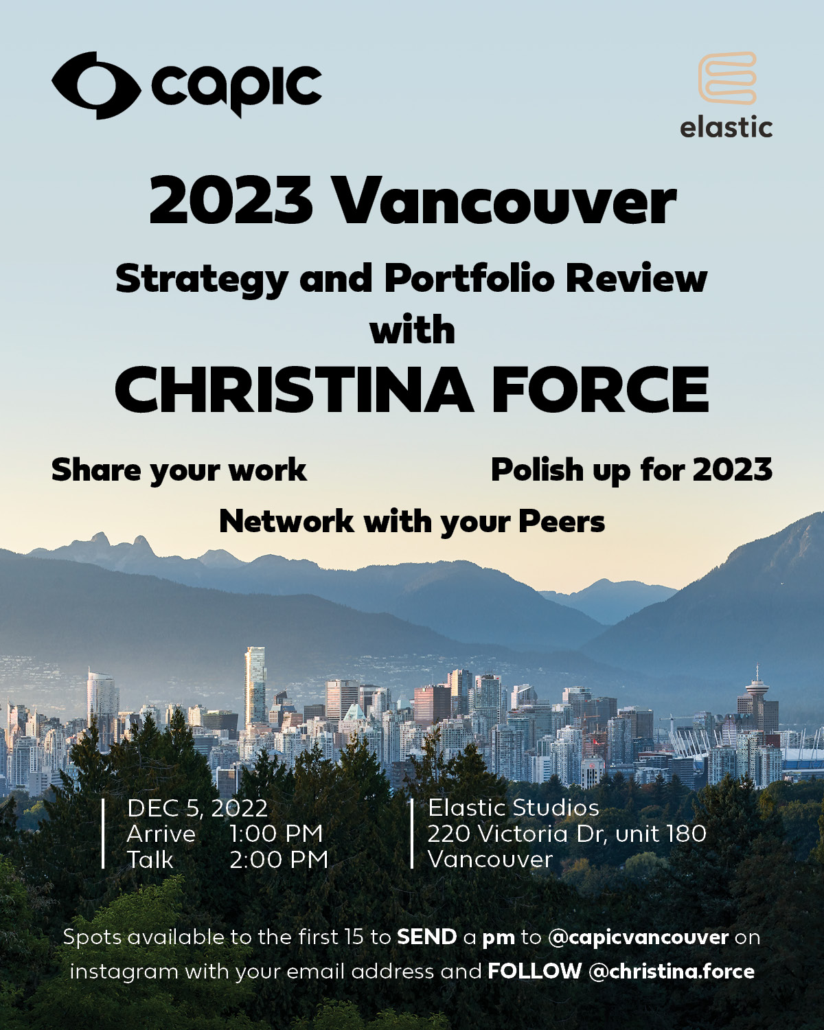 RSVP: The first 15 people to follow @capicvancouver and @christina.force and then send us their email via PM will be provided a spot for the strategy session.